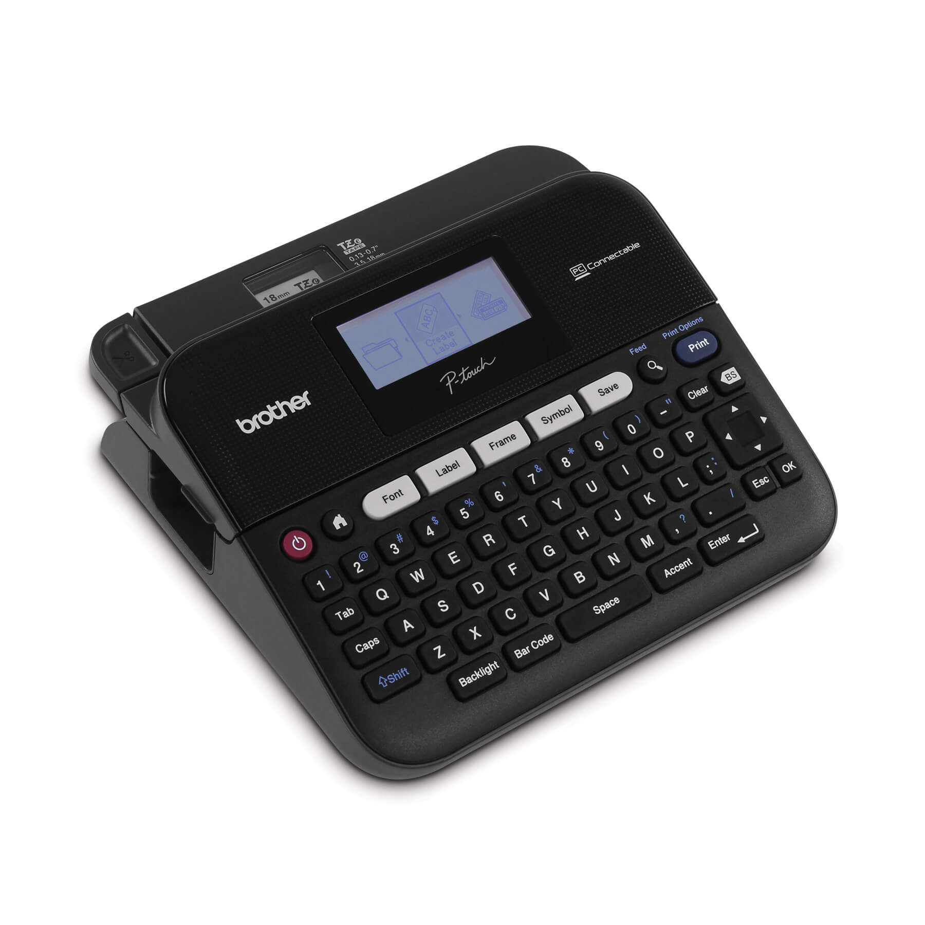 The PT-D450 is a versatile, PC-connectable label maker that allows you to quickly create personalized, professional-looking labels using the built-in keyboard or connected to a computer. With 14 fonts, 10 font styles, over 600 symbols plus barcodes, this full-featured label maker can meet virtually all your small office or home office labelling needs. Just type, format with one-touch keys and print. You can even save up to 50 labels in the large memory, a great time-saving feature. With its included AC power adapter and USB cable, you can be confident that your label maker will be ready when you are.The PT-D450 works with 4 different TZe tape widths - and the convenient, top-loading tape design lets you easily change tape cassette sizes and colours.Standard TZe tapes are durable and laminated, so they withstand water, heat and fading. See the Supplies & Accessories tab to view our full-line of standard and specialty TZe tapes.